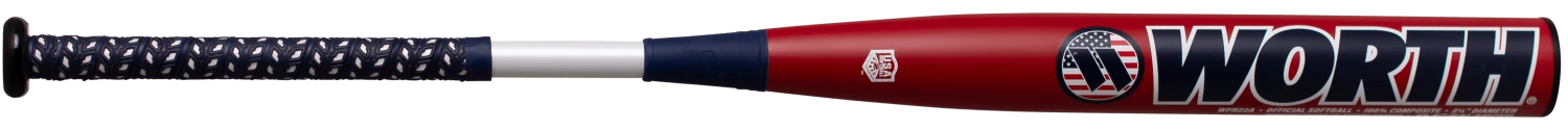 The 2022 Worth Freedom USA Slowpitch Softball Bat features the standard 2 1/4 inch barrel diameter, balanced swing weighting, and is legal for play in all USA Slowpitch Softball Leagues and Tournaments.