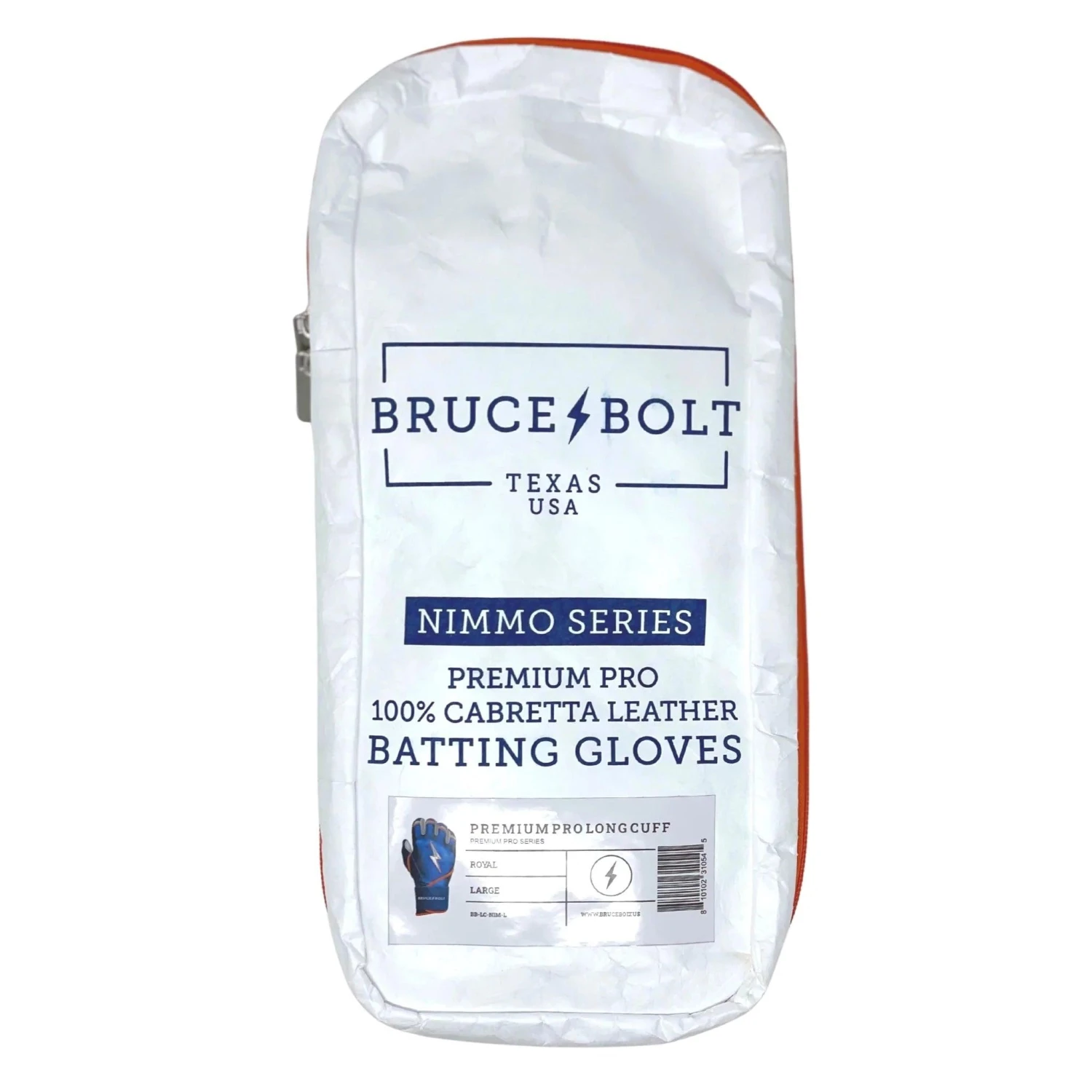 Each pair of Bruce Bolt Premium Pro Long Cuff Brandon Nimmo Signature Batting Gloves are handmade by skilled craftsmen using only the highest quality 0.9mm Cabretta leather and stitching techniques which makes Bruce Bolt gloves buttery soft but more durable than any other glove on the market.