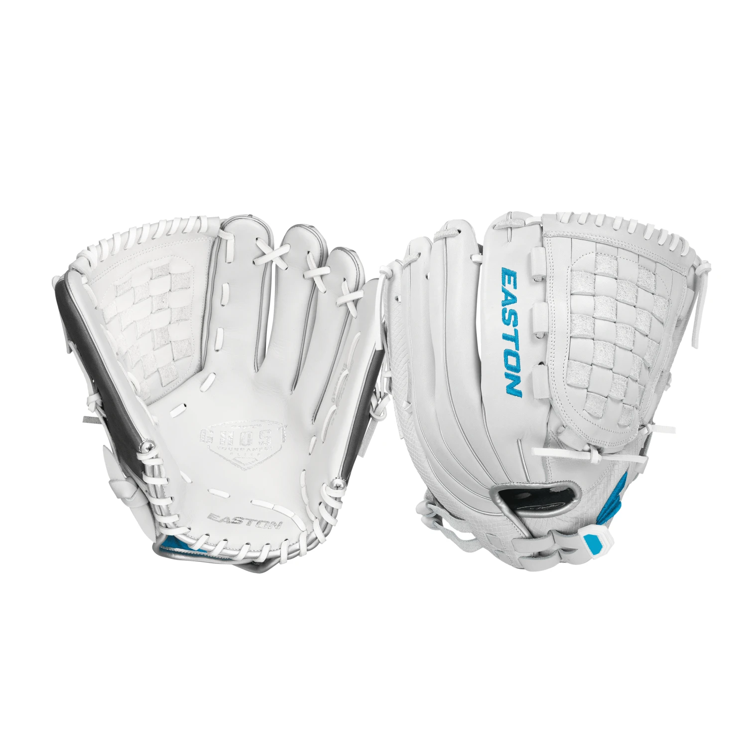 Easton’s® all-new Ghost Tournament Elite Fastpitch Series gloves are built with the exact same patterns as the Professional Collection Fastpitch gloves. These gloves are designed for the high school and travel ball player that might not yet have the hand strength of the college player, but still demands a glove that will stand up to daily use. The gloves are handcrafted with Diamond Pro Steer™ USA leather and a supple leather lining for added comfort and feel. The Quantum Closure System™ is fully adjustable for a tighter, more secure fit and optimal control. Professional grade rawhide laces add durability, while the snakeskin embossed leather accents and metallic chrome binding add extra flare.