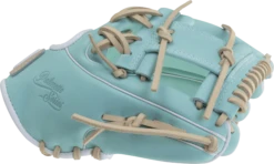 M Type fit system provides integrated thumb and pinky sleeves with enhanced thumb stall cushioning to maximize comfort and feel. The Marucci Palmetto infield fastpitch softball glove offers a deep pocket and tapered hand stall which provides a better fit and fielding control. This infield softball glove is built for the female catcher looking for a beautiful mint blue colorway.