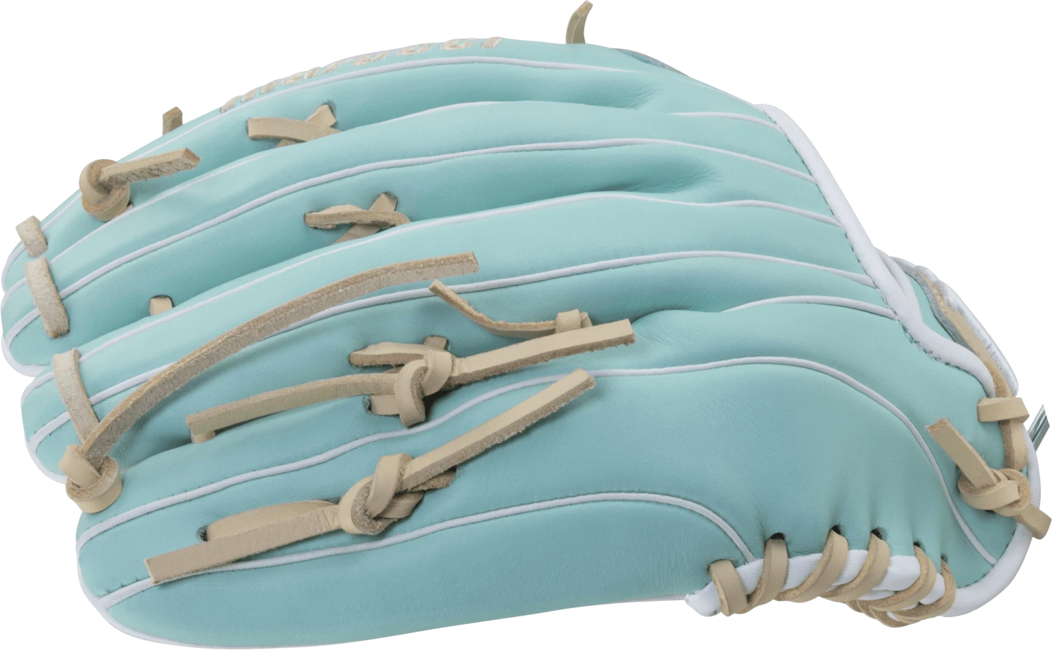 M Type fit system provides integrated thumb and pinky sleeves with enhanced thumb stall cushioning to maximize comfort and feel. The Marucci Palmetto 12.5″ fastpitch softball glove offers a deep pocket and tapered hand stall which provides a better fit and fielding control. This outfield softball glove is built for the female outfielder looking for a beautiful mint blue colorway.