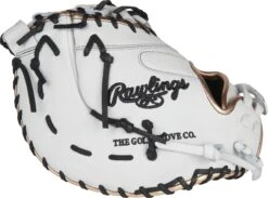 The Rawlings Heart of the Hide 12.5″ First Base Mitt features a beautiful new cosmetic redesign. Offering a beautiful White base with Gold and Black Accenting that all fastpitch softball players will love. Offering an extremely large deep pocket to scoop those hard ground balls in the dirt.